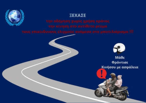 Επισήμανε επίσης ότι στο πλαίσιο της καμπάνιας «Κράνος – Κινήσου με ασφάλεια» οργανώνεται μια ξεχωριστή δράση με τη συνεργασία της Υποδιεύθυνσης Τροχαίας Αττικής και άλλων Περιφερειών.