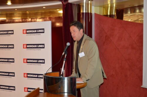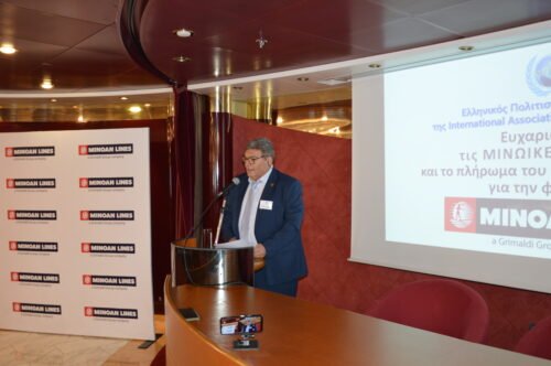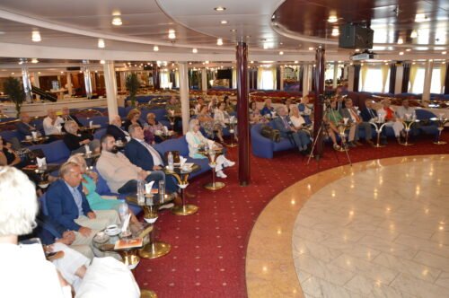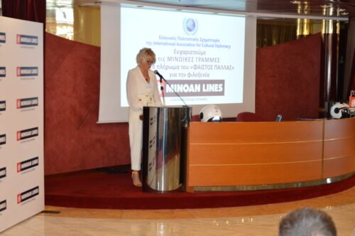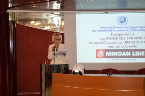 Σε ένα πολυτελές, εύφορο περιβάλλον του πλοίου ”ΦΑΙΣΤΟΣ ΠΑΛΛΑΣ” των Μινωικών Γραμμών, υπό το άγρυπνο βλέμμα της υπεύθυνης Marketing & Επικοινωνίας, κυρίας Άλκηστης Σιδηροπούλου, με διάθεση εξυπηρέτησης, την παροχή κάθε αναγκαίου τεχνικού μέσου, με τη μέριμνα του πλοίαρχου, του υποπλοιάρχου και του πληρώματος, πραγματοποιήθηκε η παρουσίαση των προγραμματισμένων και προγραμματιζόμενων δράσεων και εκδηλώσεων του Παγκόσμιου Οργανισμού Πολιτιστικής Διπλωματίας, για την περίοδο 2025 -2026.