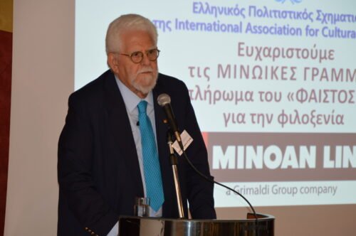 Η έναρξη της εκδήλωσης έγινε από τον Πρόεδρο του Ελληνικού Πολιτιστικού Σχηματισμού της International Association for Cultural Diplomacy, κ. Ανδρέα Ρεντζούλα, ο οποίος ευχαρίστησε την εταιρεία των Μινωικών Γραμμών, την υπεύθυνη Marketing & Επικοινωνίας κυρία Άλκηστη Σιδηροπούλου, τον Πλοίαρχο και Υποπλοίαρχο και το λοιπό προσωπικό του «ΦΑΙΣΤΟΣ ΠΑΛΛΑΣ» για την πολύτιμη υποστήριξη τους τονίζοντας πως η κοινωνική προσφορά των Μινωικών γραμμών περιλαμβανομένης και της στήριξης των πολιτιστικών δραστηριοτήτων είναι δεδομένη και αυτό υπογραμμίζεται από την καθημερινή πρακτική και παρουσία των ανθρώπων της και των αποφάσεων της διοικητικής της ομάδας.