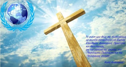 Το ανέσπερο, άδυτο και υπέρλαμπρο φως της Αναστάσεως του Χριστού να καίει ασταμάτητα για Ειρήνη, Ελευθερία, Δικαιοσύνη, Πραότητα και Αλληλεγγύη…για την γαλήνη της γνώσης, του παγκόσμιου πολιτισμού και της παγκόσμιας σκέψης.